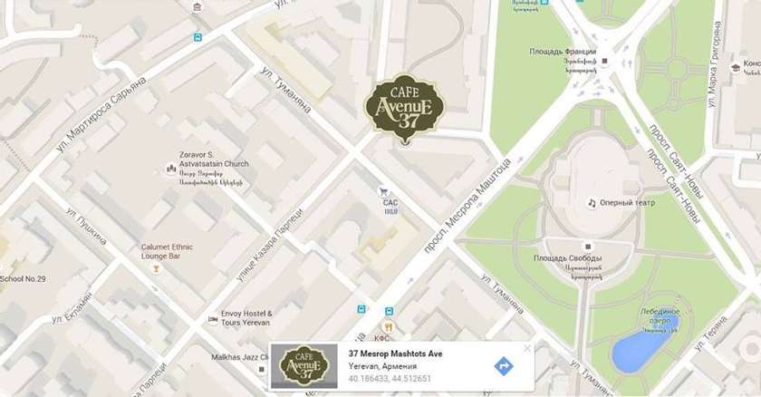 Մաշտոցի 37 հասցեում (Թումանյան-Սպենդիարյան խաչմերուկում) գործող ֆրանսիական փոքրիկ անկյունը՝ «Avenue 37»-ը, այսօրվանից արդեն գործում է և պատրաստ է ընդունելու բարի, ժպտերես, դրական ու հետաքրքիր մարդկանց:)