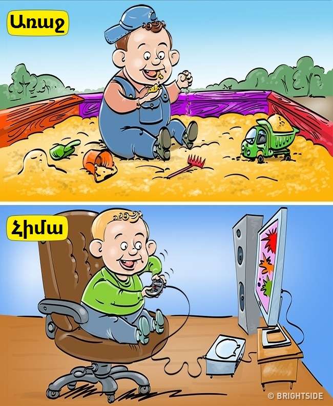 Իլյուստրատոր Սերգեյ Ռասկովալովը հետաքրքիր նկարազարդումներ է արել, որոնք ցույց են տալիս, թե որքան տարբեր մանկություն են ունենում երեխաներն այսօր, քան նախկինում էր։