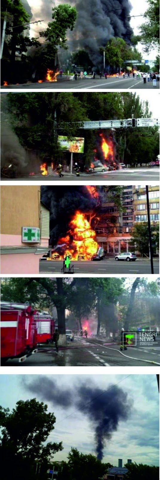 Երեկ քաղաքի կենտրոնում Սայֆուլին եւ Կաբանբայ բատիր փողոցների խաչմերուկում (մոտավորապես «RIXOS» հյուրանոցի դիմաց) բենզատար է պայթել: Այրվել են եւս 10 ավտոմեքենա, բնակելի շենք: Փրկարարները էվակուացնում են բնակիչներին: