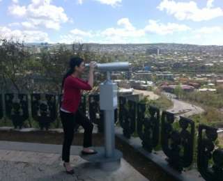 Հաղթանակ զբոսայգու հեռադիտակից օգտվողները բաժանվում են երկու խմբի՝ Մասիսին և Հյուսիսայինի շենքերի պատուհաններին նայողներ