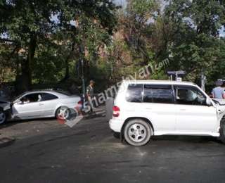 Թումանյան փողոցում «BMW»-ն բախվել է կայանված «Mercedes»-ին, վերջինս էլ «Nissan March»-ին