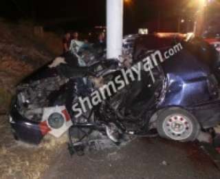 Խոշոր ավտովթար Երևանում. Ֆոլքսվագենը բախվել է էկետրասյանը, կա 1 զոհ, 3 վիրավոր