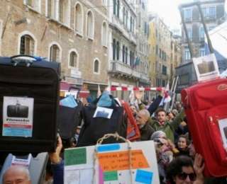 Վենետիկի բնակիչներն իրենց ճամպրուկներով բողոքի են դուրս եկել զբոսաշրջիկների մեծ քանակության դեմ (լուսանկարներ)