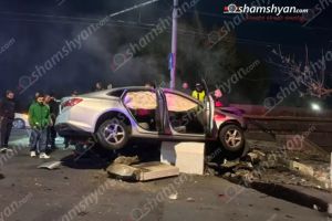 Երևան-Գյումրի ճանապարհին «Mercedes»-ը դուրս է եկել ճանապարհի երթևեկելի գոտուց, բախվել երկաթե արգելապատնեշներին, ապա քարերին