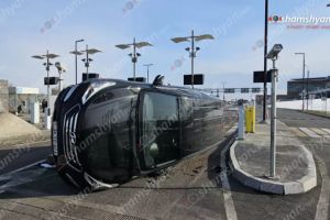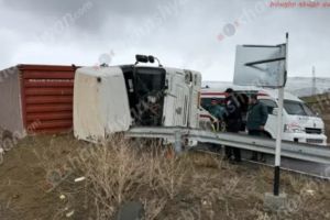 Եղվարդում «ԶԻԼ»-ը կողաշրջված հայտնվել է երթևեկելի գոտուց դուրս