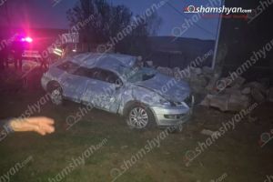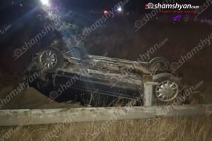 «Toyota»-ն Աշտարակի խճուղուց դեպի Եղվարդի խճուղի ընթանալիս բшխվել է երկաթե արգելապատնեշին, մի պտույտ շրջվել և մասամբ հայտնվել երթևեկելի գոտուց դուրս