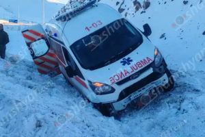Գյումրիից հիվանդին Երևան տեղափոխող շտապօգնության ավտոմեքենան վթարի է ենթարկվել, հայտնվել ձնակույտում