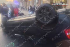 Երևանում բախվել են «Porsche Cayenne»-ը և «Opel»-ը․ վերջինը գլխիվայր հայտնվել է երթևեկելի գոտում, իսկ «Porsche Cayenne»-ը բախվել է կայանված «Toyota RAV4»-ին