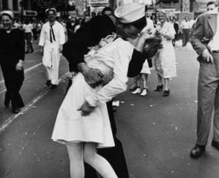 Այս խորհրդանշական լուսանկարը ցույց է տալիս Ամերիկայում մարդկանց ուրախությունը, երբ հայտնեցին Երկրորդ համաշխարհային պատերազմում զինադադարի մասին: Ի տարբերություն շատերի ենթադրությունների՝ պետք է նշենք, որ լուսանկարում պատկերված կինն ու տղամարդը զույգեր չեն: Զինվորն ուրախությունից ուղղակի գրկում ու համբուրում էր Թայմս Սքուեր հրապարակում գտնվող կանանց, իսկ այս բուժքույրը նրանցից մեկն էր: