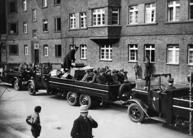 Բեռլինյան ոստիկանությունը հարավարևմտյան Բեռլինում տեղափոխում է արվեստագետներին ու լրագրողներին: Մեքենաները բեռնված են նրանցից բռնագրավված իրերով, 1933թ.: