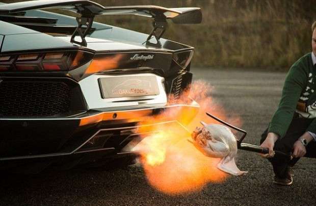 Ամերիկացիների մոտ ընդունված է հնդկահավ պատրաստել Շնորհակալության օրվա առնչությամբ, իսկ բրիտանացիների մոտ` Սուրբ ծննդի: Սիրում են այս թռչնի միսը, հիմա ի՞նչ անես: ԵՎ այսպես, հայտնի ավտոմոբիկլային բլոգեր Թիմ Բյորտոնը ևս որոշեց հնդկահավ պատրաստել, բայց ոչ թե վառարանում, այլ Lamborghini Aventador սուպերքարով: Տասը րոպե հետո ուտեստը պատրաստ էր... այլ հարց է, որ նման կերպով պատրաստված հնդկահավ համտեսել մեղմ ասած խոսհեմ արարք չէ: