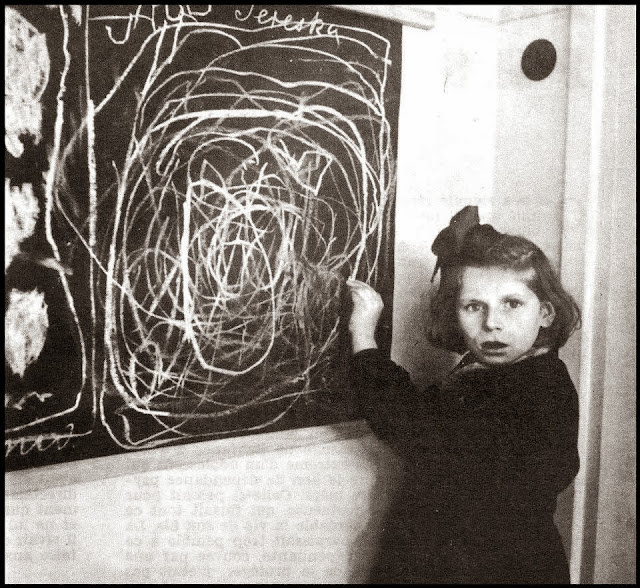 Համակենտրոնացման ճամբարում մեծացած երեխան գրատախտակին «տուն» է նկարել: Լեհաստան, 1948թ.: