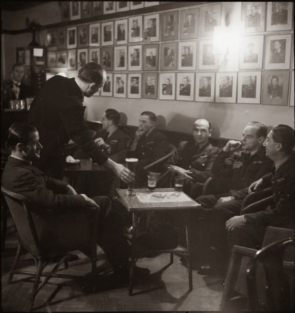 Բելգիացի օդաչուները գարեջրի սեղան շուրջ՝ Լոնդոնի բելգիական ակումբում, 1945թ.: