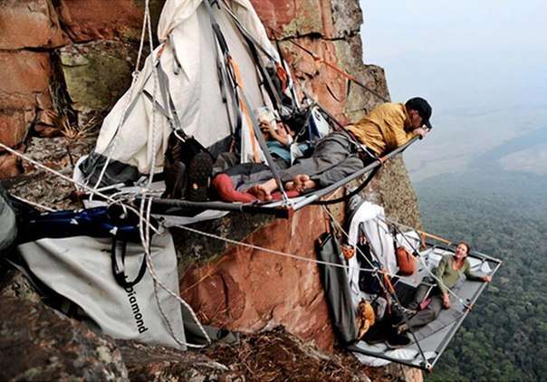 Միացյալ Նահանգներում գտնվող Իոսեմիթի արգելոցը հայտնի է իր բարձր և կտրուկ ժայռերով: Շատ ալպինիստներ, որոնք համարձակվում են մագլցել այս՝ երբեմն 90 աստիճան թեքության հասնող ժայռերը, ստիպված են լինում հարմարավետ գիշերել այստեղ, քանի որ մեկ ցերեկվա ընթացքում ժայռերից շատերը մագլցել անհնար է: Ձեզ ենք ներկայացնում մի քանի լուսանկար՝ արված այդ սարսափազդու գիշերակացների ընթացքում: Այս լուսանկարներից շունչդ կտրվում է և մարմնովդ դող է անցնում: Համաձայնեք՝ մեզնից շատ քչերը կհամարձակվեին գիշերել նման էքստրեմալ պայմաններում, երբ ներքնակիցդ ներքև կիլոմետրանոց անդունդ է: