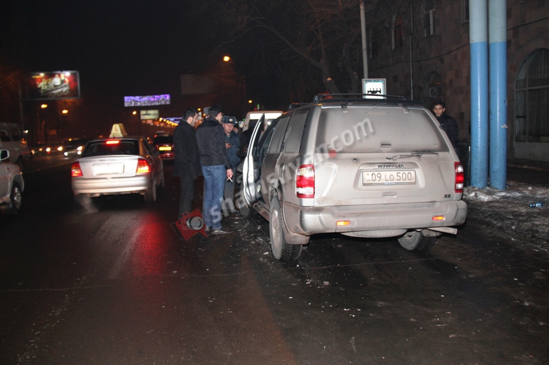 Այսօր` հունվարի 20-ին, շղթայական ավտովթար է տեղի ունեցել Երևանում: Ժամը 21:00-ի սահմաններում, Երևանի բնակիչ 25-ամյա Հովհաննես Մանասյանը վարելով Nissan Pathfinder մակնիշի 09 ԼՕ 500 համարանիշի ավտոմեքենան Կիևյան փողոցում թիվ 1 շենքի դիմաց բախվել է կանգառում եղած ГАЗель մակնիշի 2079 Տ համարանիշի ավտոմեքենային: Ինչպես վթարի վայրից հայտնում է ֆոտոլրագրող Գագիկ Շամշյանը, ГАЗель-ն էլ, որը սպասարկում է թիվ 52 Ա երթուղին, բախվել է մեկ այլ ГАЗель մակնիշի 3328 Տ համարանիշի ավտոմեքենային: Նշված ГАЗель-ն էլ սպասարկում է թիվ 6 երթուղին: Ֆոտոլրագրողը հայտնում է, որ վթարի հետևանքով 6 հոգի, որից 2 մանկահասակ երեխաներ, տեղափոխվել են հիվանդանոցներ: Վթարի վայրում հավաքվածները ֆոտոլրագրողին պատմել են, որ վիրավորներից 4 հոգու ավտոմեքենաներից դուրս են բերել քաղաքացիները, որոնց էլ հիվանդանոց են տեղափոխել ճանապարհային ոստիկանության 1-ին սպայական գումարտակի ծառայողները:
