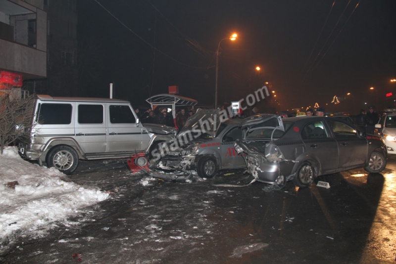 Երեկ` հունվարի 22-ին, խոշոր ավտովթար է տեղի ունեցել Երևանում: Ժամը 23:00-ի սահմաններում, 26-ամյա Նարեկ Կարապետյանը վարելով Mercedes-Benz G320 մակնիշի 11 AA 118 համարանիշի ավտոմեքենան, Արշակունյաց փողոցում հարվածել է, ըստ նախնական տեղեկությունների թիվ 30 շենքի մոտ կայանված Շեվրոլե մակնիշի 2 տաքիս ավտոմեքենաների: Ինչպես վթարի վայրից հայտնում է ֆոտոլրագրող Գագիկ Շամշյանը, վթարի հետևաքնով 4 հոգի մարմնական վնասվածքներով տեղափոխվել են Էրեբունի բժշկական կենտրոն, վիրավորներին օգնություն են ցուցաբերել վթարի հարևանությամբ գտնվող շենքերի բնակիչները: Վթարի մասին ճանապարհային ոստիկանության օպերատիվ կառավարման կենտրոնից ահազանագել են արտակարգ իրավիճակների նախարարության փրկարար ծառայության օպերատիվ կառավարման կենտրոն, որտեղից վթարի վայր են ժամանել հրշեջ փրկարաները` 1 մարտական հաշվարկով: