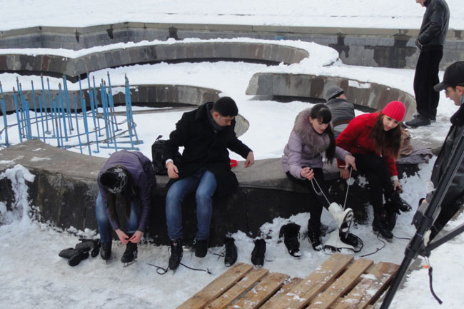 «Հրապարակի տոնածառին կոնկուռենտ ենք դարձել,-ծիծաղում է Արսենը,-ժամը 18-ից 20-ն ըստեղ իսկական գժանոց է: Լիքը մարդ կհավաքվի, մի մասը սահելու համար, մի մասն էլ բնականաբար հանդիսատեսն է: Հազիվ կհասցնենք տղեքով խնդիները կարգավորել: Ամեն օր առավոտը ժամը 10-ից մինչեւ գիշերը 1-ն ըստեղ ենք»: