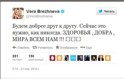 Գեղեցկուհի Վերա Բրեժնևան այլևս չի կարողանում լռել իր հարազատ Ուկրաինայում կատարվող արյունալի իրադարձությունների կապակցությամբ: