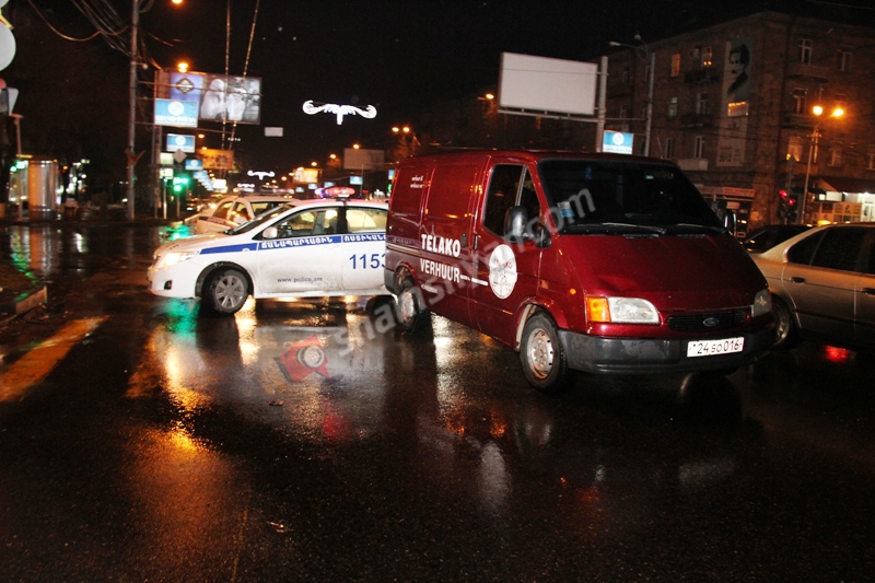 Այսօր` հունվարի 28-ին, վրաերթ է տեղի ունեցել Երևանում: Ժամը 20:00-ի սահմաններում, Ford Transit մակնշի 24 ՏՕ 016 համարանիշի ավտոմեքենայի վարորդը Կոմիտաս պողոտայի և Վաղարշյան փողոցի խաչմերուկում վրաերթի է ենթարկել 2 հետիոտնի: Ինչպես դեպքի վայրից հայտնում է ֆոտոլրագրող Գագիկ Շամշյանը, վարորդը փախուստի չի դիմել և քաղաքացիների օգնությամբ, կարճ ժամանակում դեպքի վայր ժամանած շտապօգնության բրգադը վրաերթի ենթարկվածներին տեղափոխել է հիվանդանոց: Ֆոտոլրագրողը հայտնում է, որ ըստ տեղեկությունների, հետիոտները անցելիս են եղել հետիոտնի համար նախատեսված թույլատրելի հատվածով: