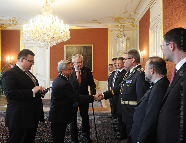 Պետական այցով Չեխիայի Հանրապետությունում գտնվող Նախագահ Սերժ Սարգսյանն այսօր հանդիպում է ունեցել Չեխիայի Նախագահ Միլոշ Զեմանի հետ: Երկու երկրների նախագահների բանակցությունների ավարտին տեղի է ունեցել մի շարք ոլորտներում համագործակցության զարգացմանն ու խորացմանն ուղղված երկկողմ փաստաթղթերի ստորագրման արարողություն: Մասնավորապես ստորագրվել՝ են Համաձայնագիր Հայաստանի Հանրապետության կառավարության և Չեխիայի Հանրապետության կառավարության միջև հանցավորության դեմ պայքարում համագործակցության վերաբերյալ, Համաձայնագիր Հայաստանի Հանրապետության կառավարության և Չեխիայի Հանրապետության կառավարության միջև տնտեսական և արդյունաբերական համագործակցության մասին, Համաձայնագիր Հայաստանի Հանրապետության առողջապահության նախարարության և Չեխիայի Հանրապետության առողջապահության նախարարության միջև առողջապահության և բժշկագիտության բնագավառում համագործակցության մասին, Փոխըմբռնման հուշագիր Հայաստանի Հանրապետության արտակարգ իրավիճակների նախարարության և Չեխիայի Հանրապետության ներքին գործերի նախարարության միջև աղետների կանխարգելման և դրանց հետևանքների վերացման, հրշեջ ծառայության և բնակչության պաշտպանության մասին, Համատեղ հռչակագիր Հայաստանի Հանրապետության բնապահպանության նախարարության և Չեխիայի Հանրապետության շրջակա միջավայրի նախարարության միջև բնապահպանության բնագավառում համագործակցության մասին, Փոխըմբռնման հուշագիր Հայաստանի Հանրապետության կառավարությանն առընթեր պետական եկամուտների կոմիտեի և Չեխիայի Հանրապետության մաքսային գլխավոր տնօրինության միջև համագործակցության մասին: