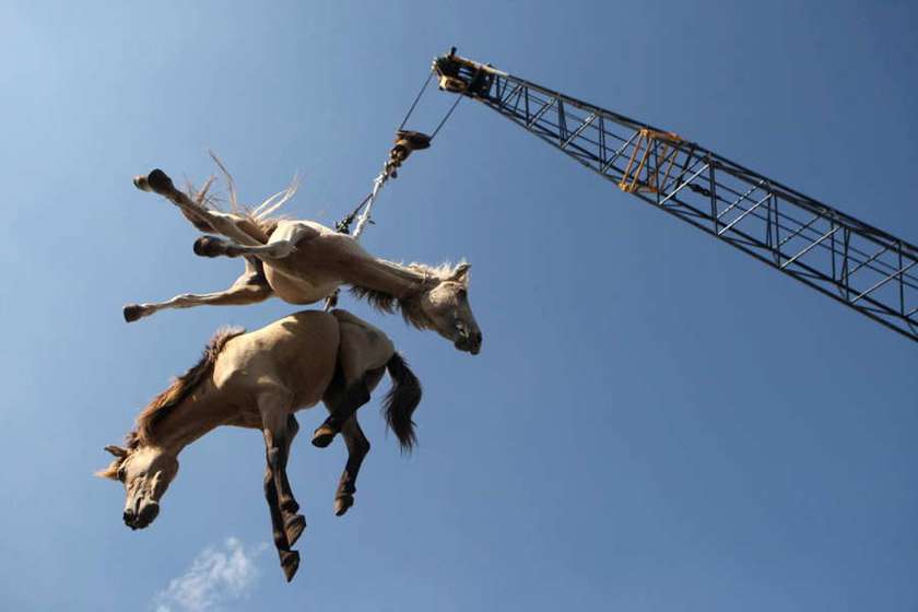 Ձիերն Ինդոնեզիայում իջեցվում են բեռնատար նավից: