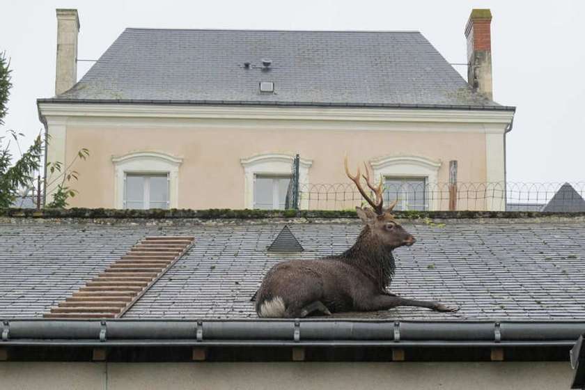 Եղջերուն հայտնվել է տանիքին, Ֆրանսիա: