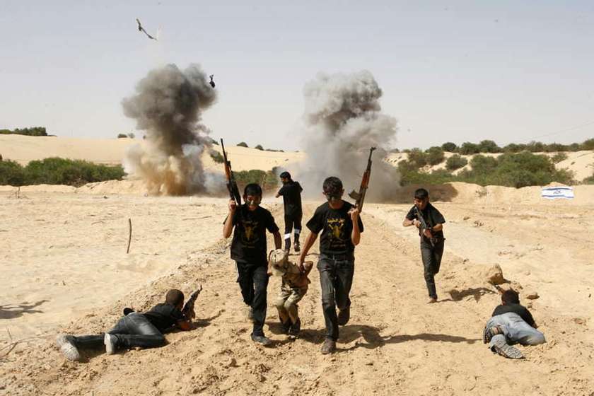 Պաղեստինցի երեխաները վազում են պայթյունների միջով՝ ձեռքերում պահելով AK47s հրազեն: Ամեն տարի «Իսլամական Ջիհիդ» կոչվող ամառային ճամբար է այցելում ավելի քան 10 000 երեխա: