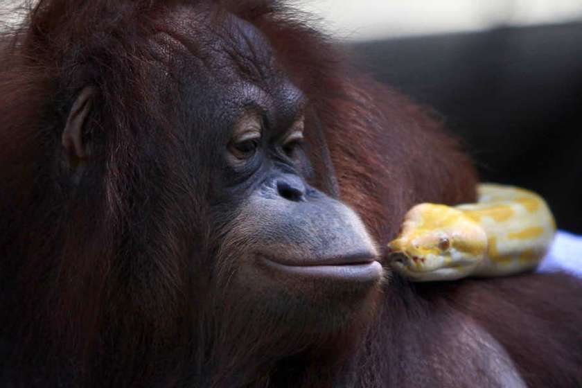 Ֆիլիպիններ, Մալաբոն կենդանաբանական այգի, վիշապօձն ու օրանգուտանը միասին: