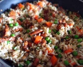Հնդկահավը լվանալ, կտրտել, մարինացնել ձիթապտղի ձեթի և սոյայի սոուսի մեջ մոտ 30 րոպե: Առանձին եփել գազարը, կանաչ ոլոռը և բրինձը: Այնուհետև մարինացված հնդկահավը տապակել թավայի մեջ, կարմրելուց հետո ավելացնել նախապես եփած գազարը, կանաչ ոլոռը և բրինձը, մի քանի րոպե պահել կրակին ու անջատել, մի քիչ աղ անել, իսկ մեծիկների դեպքում նաև կարմիր պղպեղ: