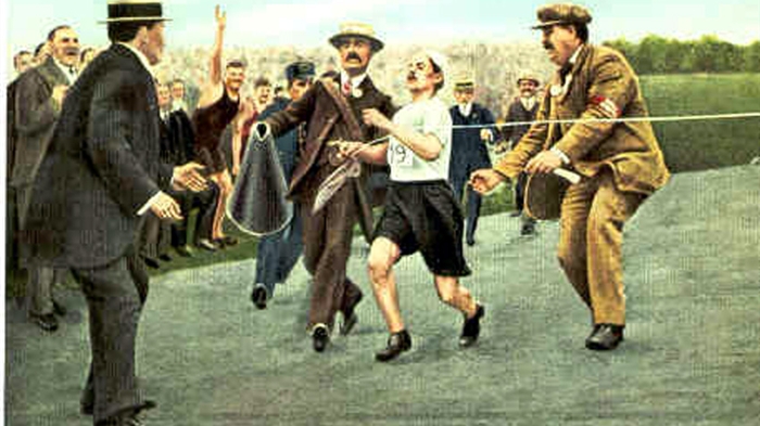 1908թ.-ի Լոնդոնի օլիմպիական խաղերի մարաթոնի վերջնագծին հասնելիս հարավաֆրիկյան բանտապահ Չարլզ Հեֆֆերոնը, ով մասնակցում էր խաղերին և վազորդների մեջ առաջատարն էր, իր երկրպագուներից մեկից մի գավաթ շամպայն է ստանում ու խմում այն: Խմիչքն ընդունելուց հետո նա փսխում է, ինչը իտալացի մարզիկ Դորանդո Պիետրիին թույլ է տալիս մարաթոնում առաջ անցնել: Պիետրին այնքան խառնված վազեց ստադիոն, որ սկսեց սխալ ուղղությամբ վազել, ու նրան ստիպված էին ուղղորդել՝ ցույց տալով ճիշտ վազքուղին: Վազքուղու վերջին մետրը հատելու ժամանակ նա անգամ վայր ընկավ ու վերջնագծին հասնելու համար օգնություն ստանալու կարիք ուներ: Նա հաղթող ճանաչվեց, սակայն շուտով որակազրկվեց այն օգնության համար, որ նա ստացել էր վազքուղում սխալվելու ժամանակ, ինչի արդյունքում ոսկե մեդալը շնորհվում է ամերիկացի Ջոնի Հայեսին, իսկ արծաթը՝ շամպայնը վայելող Հեֆերոնին: