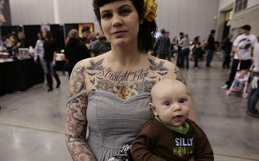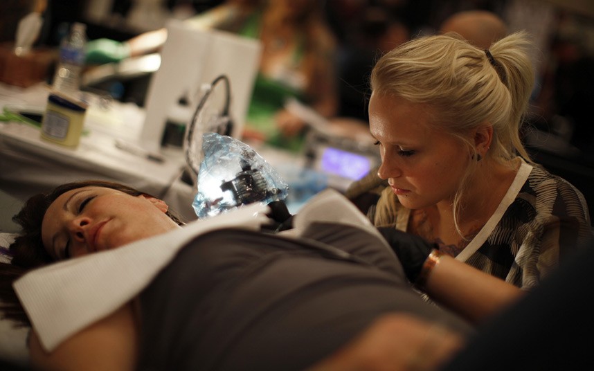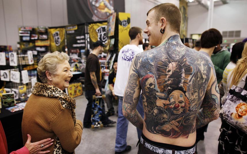 1. Տատու նկարիչ Գրեգ Ֆրենչը եւ նրա հաճախորդ Կեյլոն Բրիտընին Վիրջինիա նահանգի Hampton Roads փառատոնում: Բրիտընին վերջերս է բաժանվել ամուսնուց, հաղթահարել է քաղցկեղը եւ տարել հոր մահը: Նա դաջվածքներ հասցնելը որպես յուրատեսակ թերապիա է ընկալում, յուրաքանչյուր պատկեր արտացոլում է իր կյանքի մի հատվածը: (Լուսանկարը `Reuters / Larry Downing)