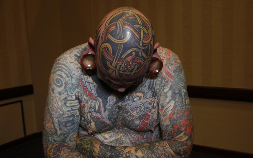 9. Ջեֆ Բիտինգը (աջից) ասում է, որ իր դաջվածքը տեւել է մոտ 500 ժամ: Առաջիկայում, նա ուզում է ամբողջությամբ ծածկել դաջվածքով նաեւ աջ ոտքը, որպեսզի հնարավորություն ունենա հաղթել «full body» մրցույթում: (Լուսանկարը `Reuters / Larry Downing)