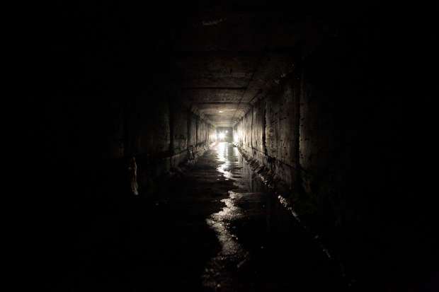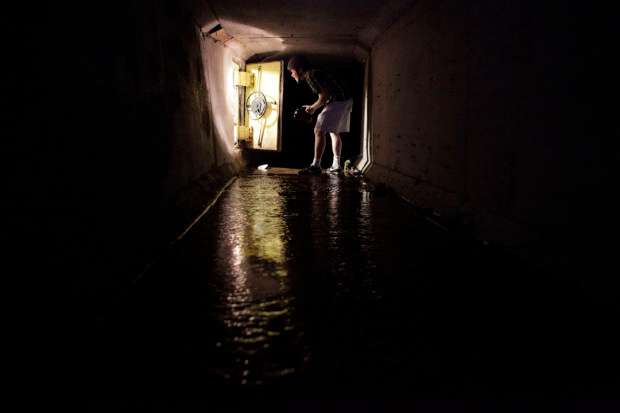 Լրագրողները կոյուղագծով քայլում են դեպի թունել: