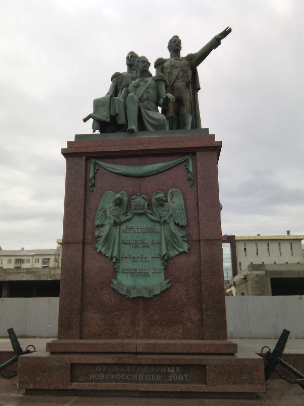Ամենամեծ ապացույցն այն բանի, որ Նովոռոսիսկի հիմքերը ևս հայերն են դրել: Սա քաղաքի հիմնադիրներին նվիրված հուշարձանն է: Վրան հիշատակված է 3 անուն.Գեներալ-լեյտենանտ Նիկոլայ Նիկոլայևիչ Ռաևսկի, փոխադմիրալ Միխայիլ Պետրովիչ Լազարև (Լազարյանների հայտնի տոհմից) և ադմիրալ Լազար Մարկովիչ Սերեբրյակով (Ղազար Մարկի Արծաթագործյան): Նրանց շնորհիվ քաղաքը ազատագրվեց թուրքերից և ստացավ այն տեսքը, որն այսօր ունի: Ամբողջ ծովեզրյա ուղին կոչված է այս երեքի անունով: