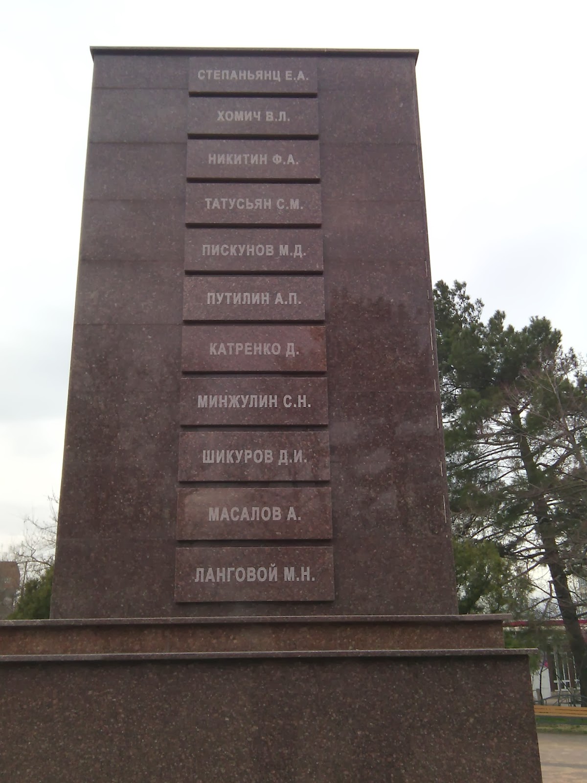 «Հայրենիքի որդիներին, որոնց աճյունը հանգչում է Նովոռոսիսկի հողում»: Ցուցակում ևս հայի անուն կար, որի վրա, երևի, մի ադրբեջանցու զավակի ձեռքով խազեր էր քաշված