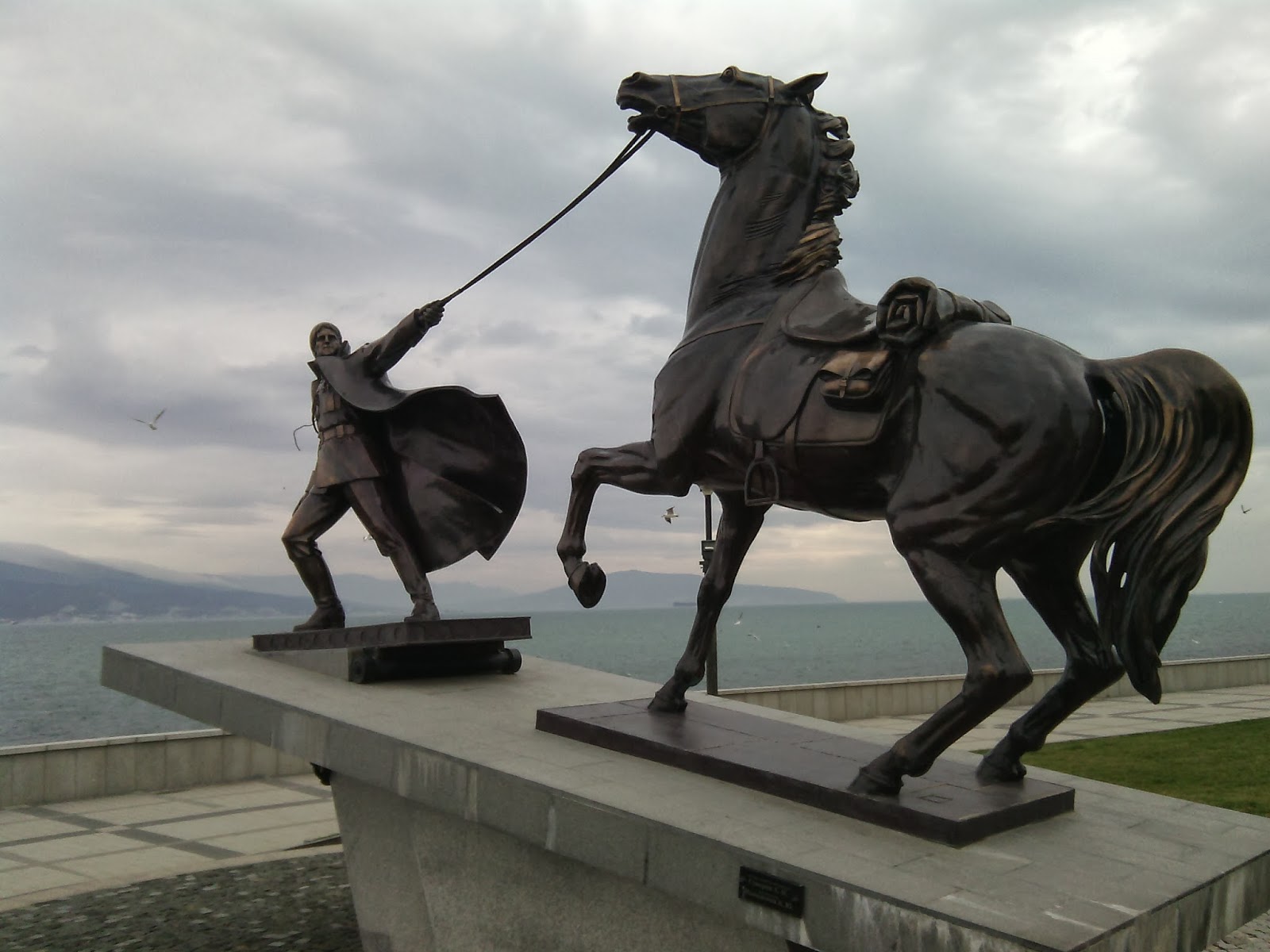 Երբ տեղ հասանք, արդեն առավոտյան ժամը հինգն էր, քաղաքը դեռ քնած էր, չնայած նավահանգստի հատվածը աշխատում է շուրջօրյա, առանց ընդմիջման: Տաքսու գները գրեթե չեն տարբերվում Երևանի գներից, բայց վարորդների հոգեբանությունը նույնն է. սկզբում ասաց 150 ռուբլի, երբ վճարեցինք, խոստովանեց, որ 120 էր, բայց դա էլ կարևոր չէր: Մի փոքր հանգստանալուց հետո դուրս եկանք քաղաք՝ պտտվելու: Ինձ ուղեկցում էր 24 տարի այնտեղ ապրած ընկերս, այնպես որ տեսարժան վայրեր փնտրելու կարիք չեղավ: Արդարության համար պետք է նշել, որ քաղաքը գերհագեցած էր այգիներով: Ամեն քայլափոխի կանաչ տարածություն էր, նստարաններով, իրենց փոքրիկ գազանանոցով, խաղահրապարակներով, իսկ մի քանի կիլոմետր ձգվող ծովափնյա ուղին ամբողջությամբ բարեկարգված էր: Հենց այնտեղ էլ գտնվում էր հուշարձանների մի ամբողջ հավաքածու: Եվ այսպես, սկսենք ֆոտոէքսկուրսիան.