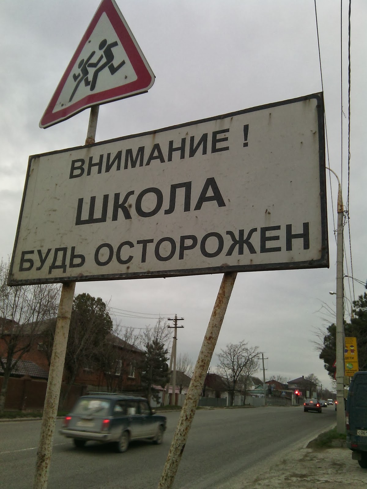 Իրականում, այն զգուշացնում է վարորդներին, բայց ես կվերագրեի բոլոր մարդկանց, որովհետև ռուսական դպրոցականները, դրանք 12 տարեկան ինքնուրույն, ծխող, խմող աղջիկ-տղաներ են, որոնցից իրոք, պետք է զգույշ մնալ:
