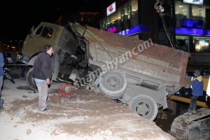 Երեկ՝ մարտի 11-ին, արտակարգ դեպք է տեղի ունեցել Երևանում: Ժամը 23:50-ի սահմաններում Աբովյան փողոցում Երիտասարդական մետրոյի կայարանի հարևանությամբ գտնվող SAS սուպերմարկետի դիմաց դեռևս անհայտ պայմաններում «Կամազ» մակնիշի բեռնատարը, նշված հատվածում շինարարական աշխատանքներ կատարելու ընթացքում, կողաշրջվել և ընկել է նշված տարածքում շինարարական աշխատանքներ կատարող տրակտորի վրա: