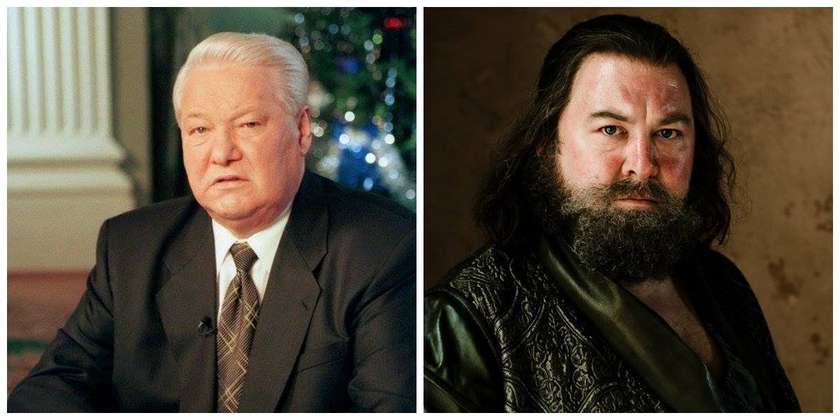 14. Խելագար արքայի գահն ուզուրպացրեց Ռոբերտ Բարատեոնը, ով մեծ սեր ուներ գինու ու 0-ական սեր պետությունը կառավարելու նկատմամբ: Նա սնանկության դուռը հասցրեց երկիրը, ընթացքում արյան մեջ խեղդելով բոլոր ապստամբությունները: Կարծում եմ, որ ռոբերտի կերպարի նախատիպերից մեկը եղել է ալկաշ Բորիս Ելցինը, ով ուզուրպացնելով Գորբաչովի գահը՝ սնանկության դռանը հասցրեց Ռուսաստանը, արյան մեջ խեղդեց Չեչնիան ու մեծ սեր ուներ ալկոհոլի հանդեպ: Պաշտոններն էլ շռայլում էր ԽԾԲ սկզբունքով՝ իսկուիսկ, ինչպես Ռոբերտ Բարատեոնը: