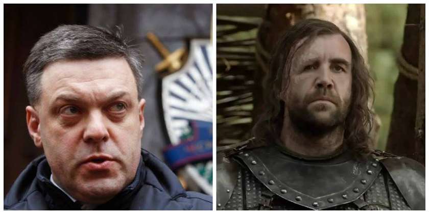 11-12. Վեստերոսում կային երկու ասպետներ, որոնք ասես կատաղած շներ լինեին ու փայլում էին իրենց դաժանությամբ ու բռնության նկատմամբ հակվածությամբ: Ավելի դաժան ու ամեհի եղբայրը Գրիգոր Քլիգանն էր, իսկ ավելի չափավորն ու հակասականը՝ կրտսեր եղբայր Սանդոր կլիգանն էր: Ուկրաինայում էլ դաժանության ու բռնության հակվածությունը բնութագրում է աջ-ազգայնական ուժերին, որոնցից ծայրահեղականներին՝ «Աջ սեկտորին» գլխավորում է Դմիտրի Յարոշը, իսկ ավելի չափավոր «Սվոբոդային»՝ Տյագնիբոկը: