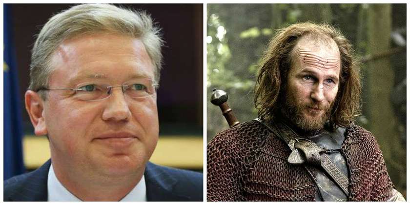 15. «Գահերի խաղում» կան նաև երկրորդական բազմաթիվ կերպարներ, ինչպիսին օրինակ լորդ Կարստարկն էր ում ֆիլմում գլխատում էր Նեդ Ստարկի որդին: Կարելի էր նրան բաց թողնել ու չընդգրկել այյս ցուցակում, բայց ընդգրկեցի ու ոչ թե վարքաբանական նմանության համար... ախր էս շան տղեն ոնց որ կեղծամ ու մորուք կպցրած Լուկոշենկոն լինի :)