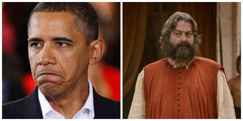 6. «Գահերի խաղում» Վեստերոսի ներքին հարցերին ակտիվորեն խառնվում է մագիստրոս Իլլիրիոն և քողարկված քայլերով փորձում գահ բարձրացնել Դեյեներիսին: Ո՞վ կարող է լինել մեր իրականությունում ավելի լավ Իլլիրիո, եթե ոչ Բարաք Օբաման, ով սկզբում քողարկված, իսկ հետո էլ ուղղակիորեն խառնվում է Ուկրաինայի գործերին ու իր մարդուն փորձում նստացնել գահին: