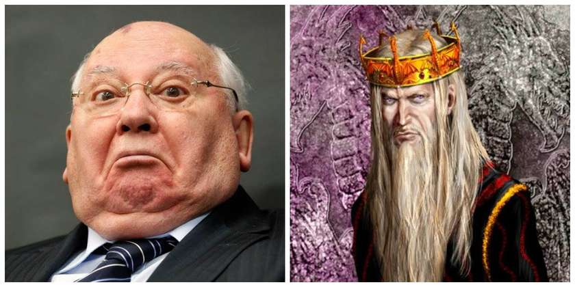 13. Բայց չպետք է մոռանալ նաև նախապատմությունը: Վեստերոսի մասին մատմությունը ունի իր նախապատմությունը, որտեղ խելահեղ արքա Էյերիս Տարգարիենը կորցնում է իր գահը և հիմք դնում պետության կոլլապսին: Էյերիսը ըստ գրքի ուներ փափուկ բնավորություն, բայց աստիճանաբար գժվում է ու ամեն տեսակի դաժանության ու ստորության ունակ դառնում: Իսկը-իսկը Գորբաչովն ա մեր սիրելի: