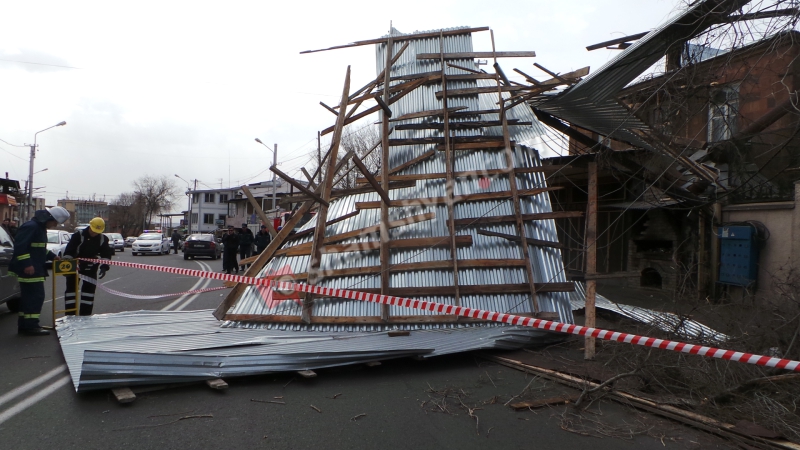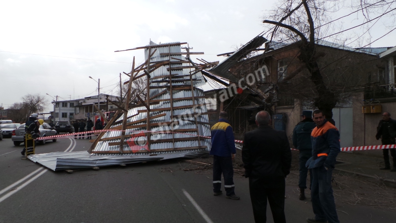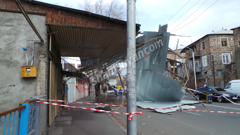 Այսօր՝ մարտի 17-ին, արտակարգ դեպք է տեղի ունեցել Երևանում: Ժամը 11:00-ի սահմաններում քաղաքացիների կողմից ահազանգ է ստացվել ճանապարհային ոստիկանության օպերատիվ կառավարման կենտրոն, որ Պռոշյան փողոցում երթևեկությունը կաթվածահար է եղել: Ինչպես հայտնում է ֆոտոլրագրող Գագիկ Շամշյանը, օպերատիվորեն ժամանած ճանապարհային ոստիկանության 1-ին սպայական գումարտակի ծառայողները պարզել են, որ ճանապարհի խցանման պատճառը ուժեղ քամու հետևանքով նշված փողոցի թիվ 20 տան պոկված տանիքն է: