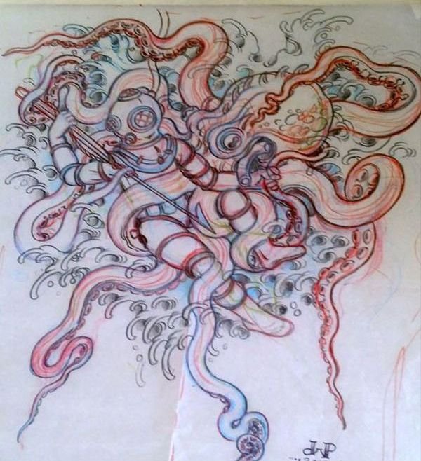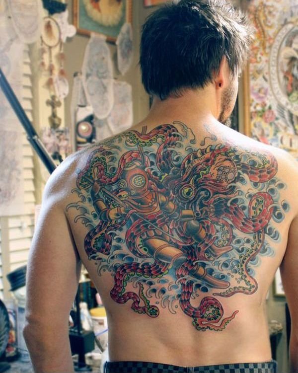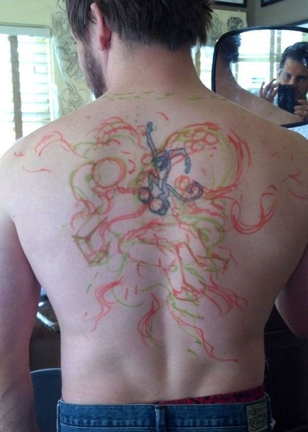 Այս տղան 19 տարեկանում մի հիմարություն արեց` մեջքին դաջեց դիսնեյան կապիկի պատկեր, որը բոնգո է խաղում, որի համար շատ ափսոսաց անելուց գրեթե անմիջապես հետո: 37 տարեկանում, վերջապես, նա ազատվեց այդ դաջվածքից` դրա վրա պատկերելով ութոտնուկի հետ պայքարող սուզորդի: