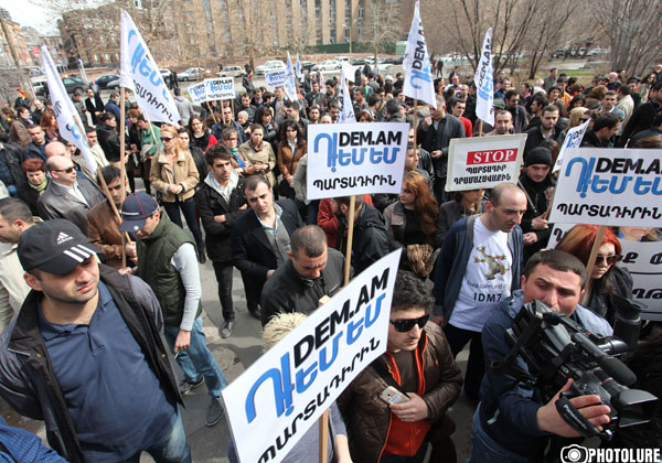 Մենք ենք տերը մեր երկրի, մի́ մտեք մեր գրպաններ, միացե́ք, հաղթանակ և նման այլ արտահայտություններ էր վանկարկում այսօր Ազատության հրապարակում հավաքված բազմահազարանոց ամբոխը: «ԴԵՄ ԵՄ» հասարակական շարժումը այսօր՝ մարտի 22-ին կազմակերպել էր հավաք-երթ ընդդեմ կուտակային կենսաթոշակային համակարգում ՊԱՐՏԱԴԻՐ բաղադրիչի: Սա այն դեպքերից էր, երբ հայ ժողովուրդը միասնական էր՝ անկախ կուսակցական պատկանելությունից, սեռից ու տարիքից: Ազատության հրապարակը լիքն էր մարդկանցով, հաճելիորեն զարմանալի էր տարեցների ներկայությունը, պարտադիրը կարելի է ասել, նրանց չի վերաբերվում, որովհետև նրանցից գումար չի պահվի, բայց այստեղ էր երևում մեր ազգի միասնությունը, անգամ այդ տատիկ, պապիկները, ովքեր դժվարությամբ էին քայլում, եկել էին իրենց ներկայությամբ ապացուցելու, որ մենք միասնական ենք: Մինչ երթը սկսելը ելույթ ունեցան «ԴԵՄ ԵՄ» շարժման ակտիվիստները՝ կոչ անելով մարդկանց լինել վճռական ու հավատալ, որ մեր երազած Հայաստանը դեռ գալու է: Բազմաթիվ քաղաքական գործիչներ ևս ելույթ ունեցան, իր խոսքում ԱԺ պատգամավոր, ԲՀԿ խմբակցության անդամ Վահան Բաբայանը նշեց.