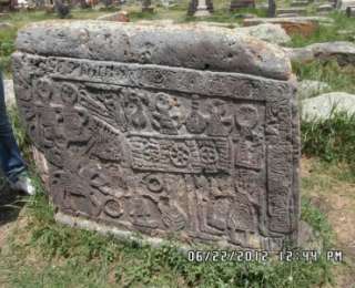 Նորատուս գյուղի Հարսանիք խաչքարը: Ձախ մասում՝ վերևում, պատկերված են հարսն ու փեսան, որոնցից աջ՝ հարսանքավորներն են ՝ հարսանիքի սեղանի շուրջ,որի վրա կա գինի, իսկ խորովածը սեղանի ու հարսի մեջտեղում է՝ շշերից կախված: Հարսի գլխավերևում մկրատ է, ՝որից հետևություն՝ հարսը դերձակուհի էր: Ձախ մասում՝ ներքևում, Ձիու վրա պատկերված է մոնղոլը,որը հարձակվում է աշխատավոր ժողովրդի վրա,որոնք մանգաղով ցորենն էին հավաքում: Մանգաղները ներքեվի մասում՝ մեջտեղում են, որից էլ աջ՝ աշխատավոր ժողովուրդն է: Մոնղոլները սպանում են աշխատավորներին, այնուհետև անցնում հարսանիքի վայր, սպանում նաև հարսին ու փեսային, որոնք էլ թաղվում են ահա այս քարի տակ: