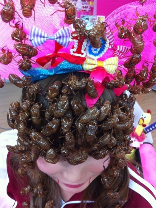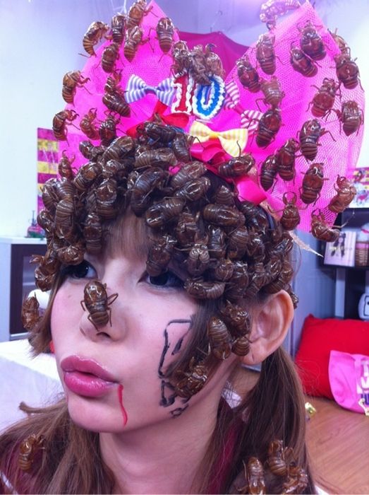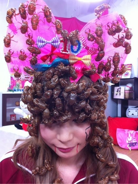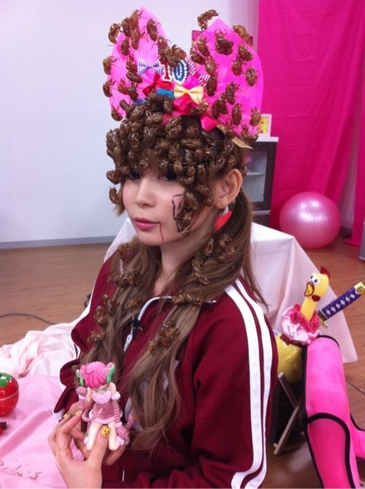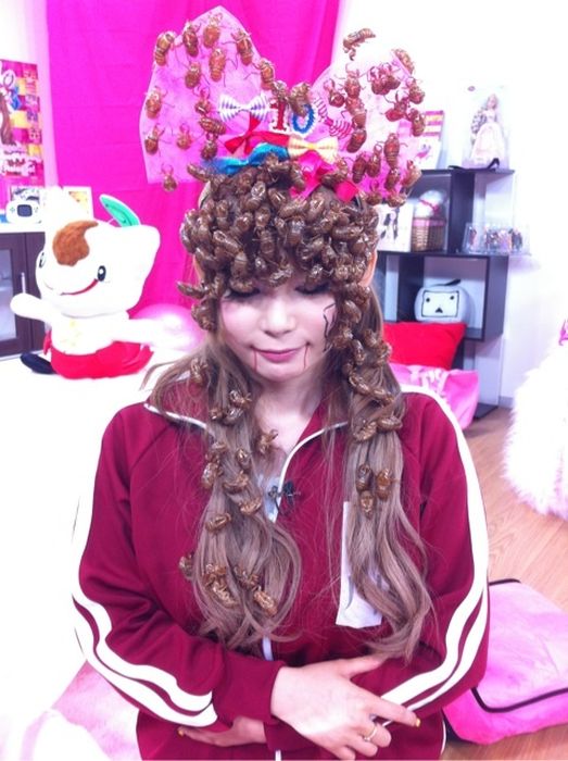 Հայտնի ճապոնական կոսփլեյուհի Շոկո Նակագավան, հայտնի է նաեւ Շոկոտան անունով, շատ արտասովոր կերպով է հայտնվել տեղական ալիքներից մեկում: Այս անգամ նա զարմացրել է իր երկրպագուներին գլխի կենդանի միջատների զարդարանքով, մասնավորապես հսկա խավարասերներով: Ժեստ :)