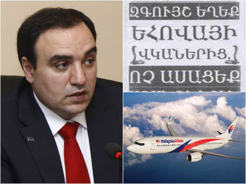 Երեկ բոլորը խոսում էին կործանված Բոինգ-777-ի մասին: Հետաքրքիրն այն է, որ ՌԴ-ն մեղադրում է Ուկրաինային ու Եվրոպային, Եվրոպան իր հերթին՝ ապստամբերին ու ՌԴ-ին, բայց ոչ մեկ չի ցանկանում, որ այդ դեպքը ջրի երես դուրս գա: Մեղավորության առյուծի բաժինը Ուկրաինայինն է, նա գիտի, որ այդ շրջաններում պատերազմ է ընթանում, ինչո՞ւ չի փակում այդ մասով իր օդային սահմանը, մեղավոր է Ռուսաստանը, որ չի կարողանում իր հարևան պետությունում խաղաղ իրավիճակ պահել, մեղավոր է Եվրոպան, որ միշտ մարդասիրական կոչեր է անում, բայց Ուկրաինան հասցրել է այս վիճակին, սակայն մեղավոր չէին 293 անմեղ զոհերը, որոնք զոհվեցին ամենաանիմաստ ձևով: Թքած երեք կողմերի վրա էլ, ու խաղաղություն զոհերին ու համբերություն նրանց ընտանիքներին: