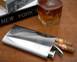 Վիսկիի հետ ոչինչ այնքան չի սազում, որքան լավ սիգարը: Այժմ արդեն կարող եք մեկ կրակոցով երկու նապաստակ սպանել: Այս սրվակը Ձեզ թույլ կտա միաժամանակ թե՛ սիգար, թե՛ վիսկի պահել դրանում: Չժանգոտվող պողպատից պատրաստված այս սրվակի մեջ հնարավոր է լցնել 110 գ խմիչք և 2 սիգար: